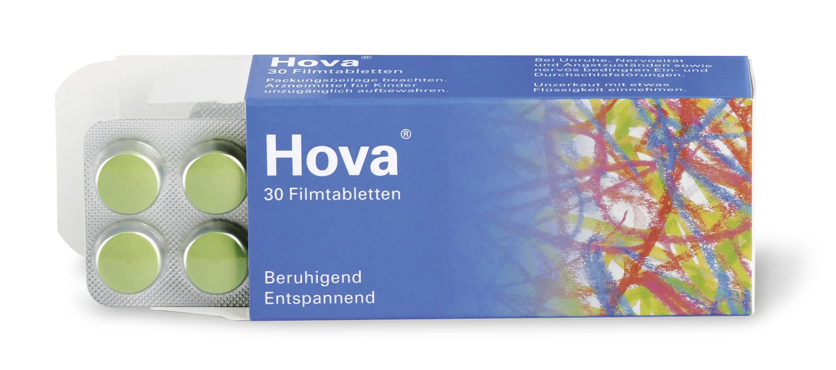 Das pflanzliche Arzneimittel Hova wirkt beruhigend und entspannend mit Hopfen und Baldrian. Die ausreichend hohe Dosierung zeigt eine schnelle Wirkung bei guter Verträglichkeit. Abends eingenommen fördert Hova das Ein- und Durchschlafen. Untertags sorgt Hova durch seine beruhigende Wirkung für mehr Gelassenheit.